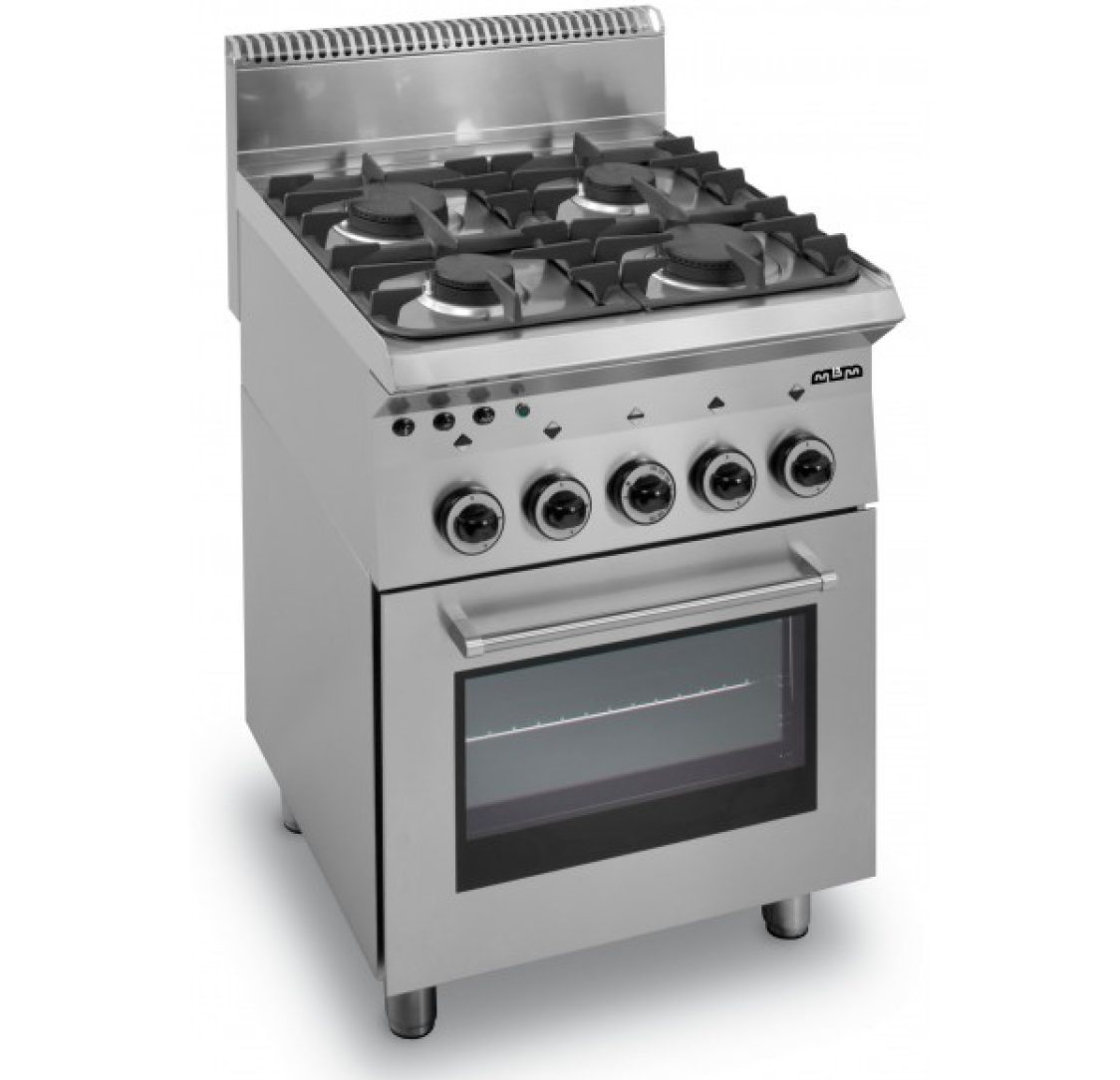 Fogão a gás 4 queimadores c/ forno - Fogos: 4 - Potência do fogão: 4x6 kW - Potência do forno: 6,0 kW - Potência total: 30 kW - Dimensões: 800×700×900 (LxPxA) mmEquipamento disponível para aluguer. Para um orçamento mais detalhado entre em contacto connosco via WhatsApp.