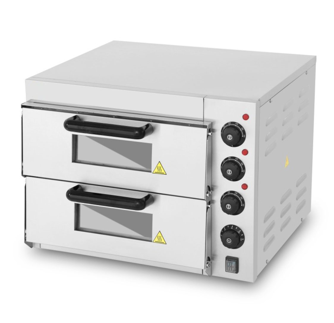 Forno elétrico de pizza 2x40cm diâmetro 560x570x440mm - Diâmetro máximo da pizza: 400 mm - Potência: 3 kW - Tensão: 230 VEquipamento disponível para aluguer. Para um orçamento mais detalhado entre em contacto connosco via WhatsApp.