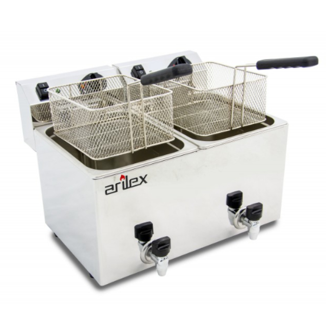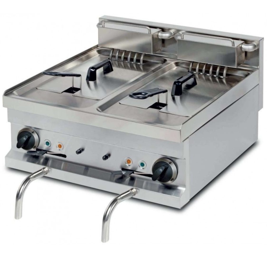 Fritadeira elétrica 24+24 Litros 2x18kW 800x900x850mm - Profundidade: 900 - Capacidade (L): 24+24 - Potência (kw): 36,0 - Tensão (v): 400 - Dimensões do cesto (LxPxA): 145x335x155Equipamento disponível para aluguer. Para um orçamento mais detalhado entre em contacto connosco via WhatsApp.