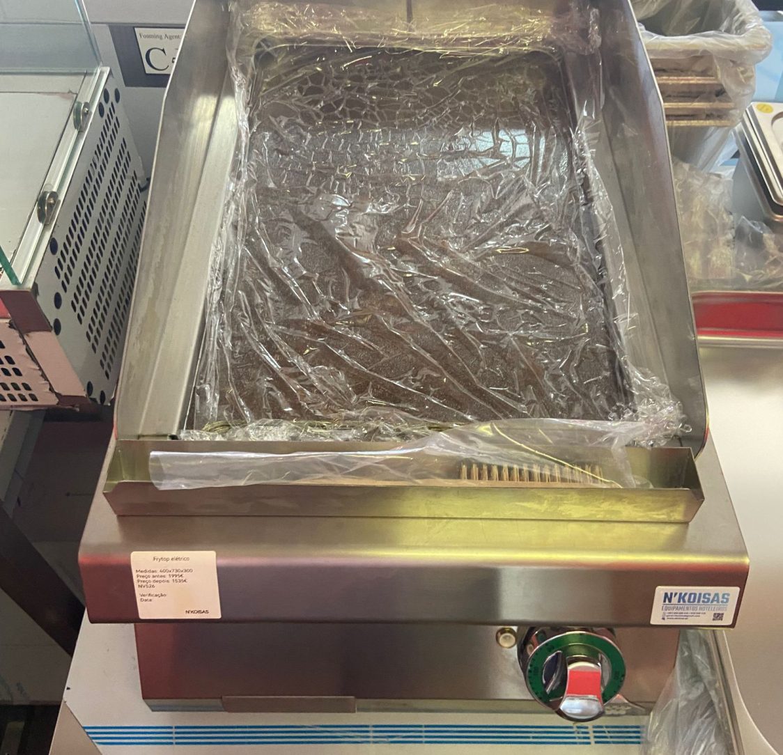 Frytop Elétrico 60 cm Placa Lisa Cromo DuroPotência de Resistência (kw): 2 x 5,0Potência (kw): 10,0Voltagem (V): 400Peso (kg): 61Dimensão da Superfície: 595x550Dimensão: 600x650x270Equipamento disponível para aluguer: 22,00€ por diaPara um orçamento mais detalhado entre em contacto connosco via WhatsApp