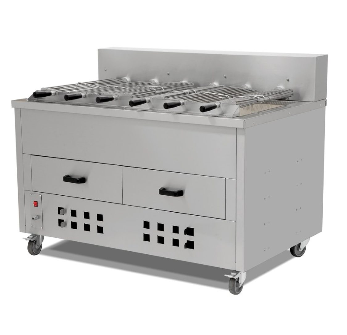 Grelhador de Frangos Horizontal a Carvão - 5 espetos - Capacidade N.º de espetos: 5 - Equipamento dos espetos: 5 Gaiolas + 5 espetos abertos + 1 Grelha plana - Comprimento útil da espada: 620 mm - Potência: 0,4 kW - Dimensões Externas: 1200x930x1100 (LxPxA) mmEquipamento disponível para aluguer. Para um orçamento mais detalhado entre em contacto connosco via WhatsApp.