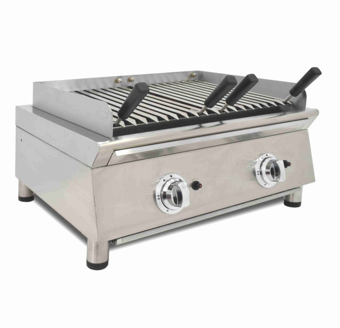 Grelhador A Gás Basco 40 Cm Com Pedra Vulcânica - Válvulas: 1 - Queimadores: 2 - Potência: 5,5 kW - Superfície útil: 302x396 mm - Dimensões: 385x587x364 mmEquipamento disponível para aluguer. Para um orçamento mais detalhado entre em contacto connosco via WhatsApp.