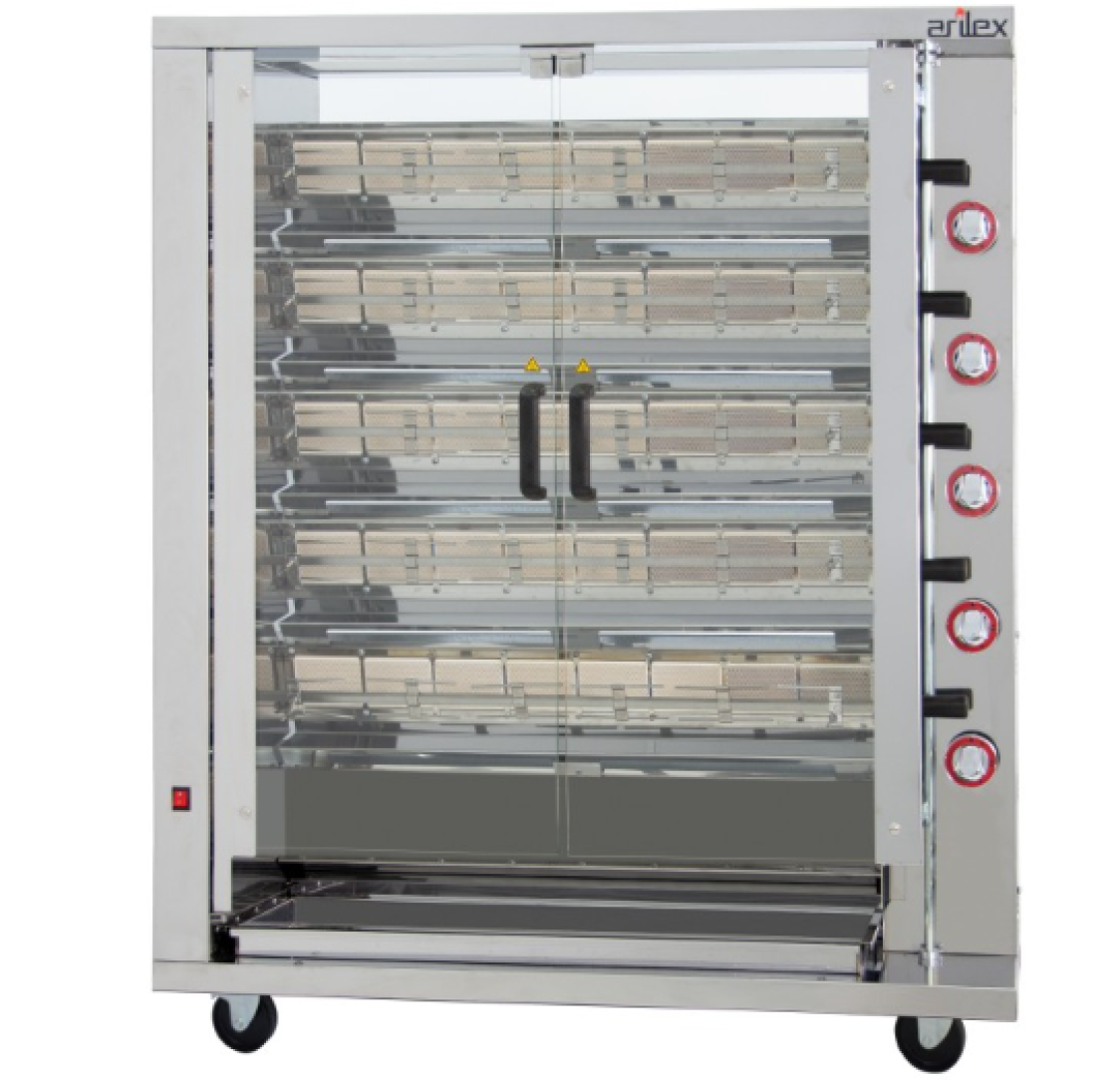 Capacidade dos espetos da grelha: 5 (não incluídos)Frango Capacidade: 20-30Potência (Kw): 3,00Queimadores: 5Dimensões (CxLxA) mm.: 1160x450x1290Peso (Kg): 116
