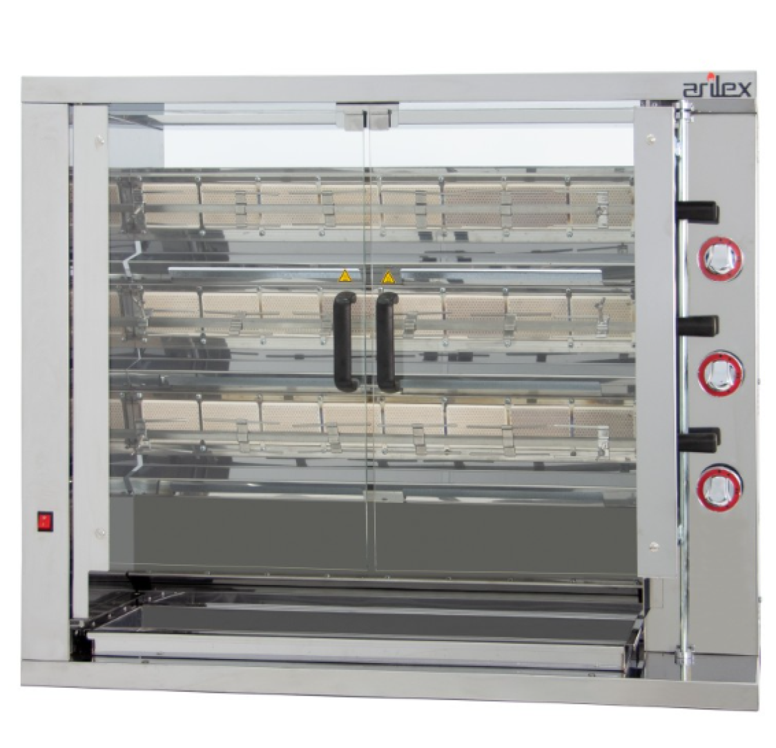 Capacidade dos espetos da grelha: 3 (não incluídos)Frango Capacidade: 12-18Potência (Kw): 21,00Queimadores: 3Dimensões (CxLxA) mm.: 1160x450x930Peso (Kg): 76Base de Suporte não incluída