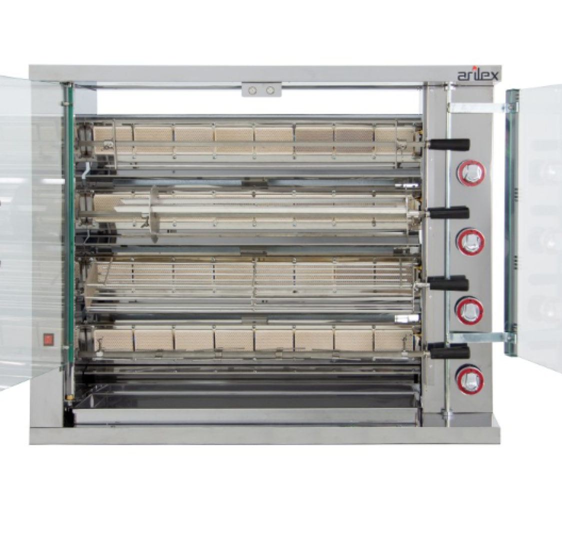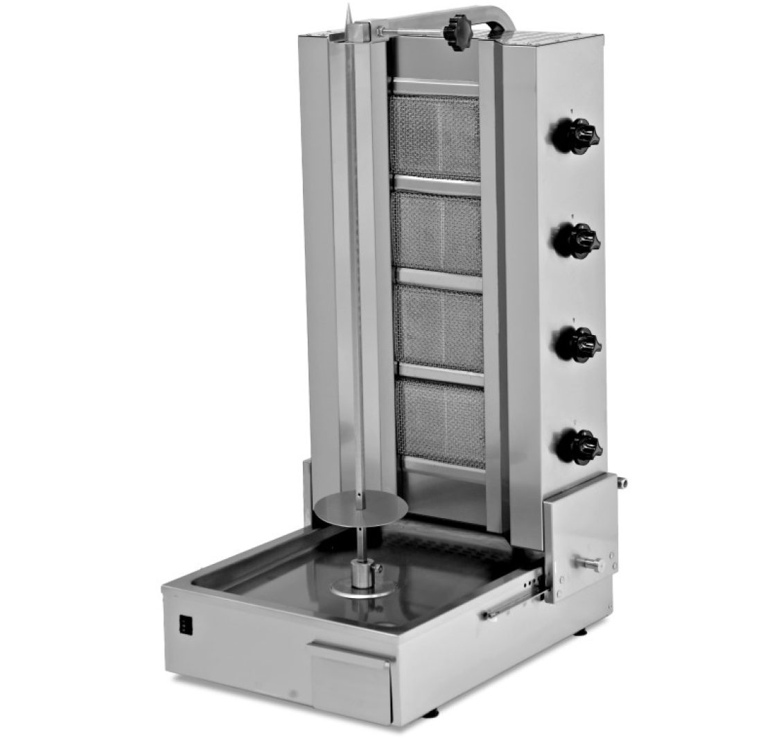 Máquina de Kebab a Gás 4 Queimadores Motor Inferior e Base Ajustável 568x707x1158mm - Número de queimadores : 4 - Potência total dos queimadores : 14 Kw - Tamanho da espada: 811 mm (H) - Velocidade de rotação: 2,5 rpm - Peso: 41 Kg - Dimensões: 568x707x1158 (LxPxA) mm - Tensão: 230 VEquipamento disponível para aluguer. Para um orçamento mais detalhado entre em contacto connosco via WhatsApp.