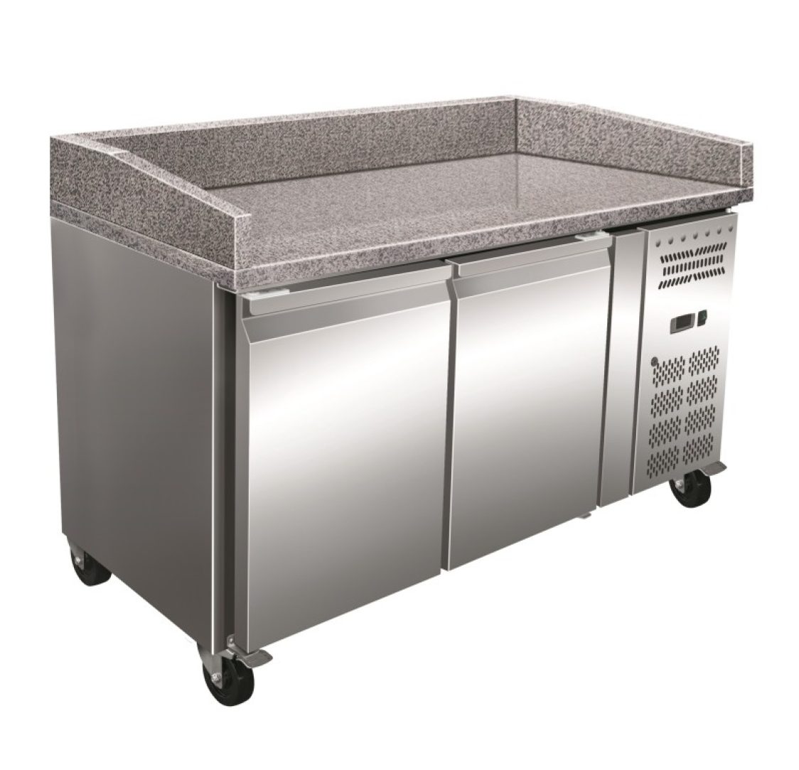 Bancada Refrigerada de 2 portas com tampo em granito para pizzas Medidas embalagem: 1545x840x1050 mm Capacidade bruta: 428 litros Temperatura: +2 /+8ºC Classe climática: 4 Classificação energética: B Consumo: 876 kWh/ano Refrigerante: R290 Potência: 208 W Tensão: 230 VEquipamento disponível para aluguer. Para um orçamento mais detalhado entre em contacto connosco via WhatsApp.