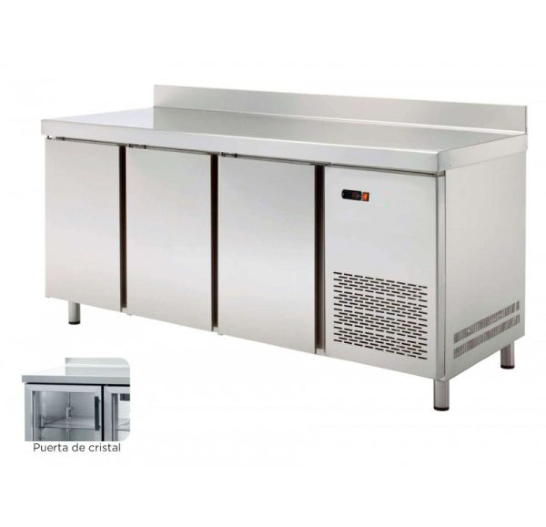 Bancada Refrigerada de 4 portas Medidas: 2542x600x850mm Temperatura: -2 / +8 °C Capacidade: 530 litros Classe energética: D Consumo: 1920kWh/ano Potência: 350W