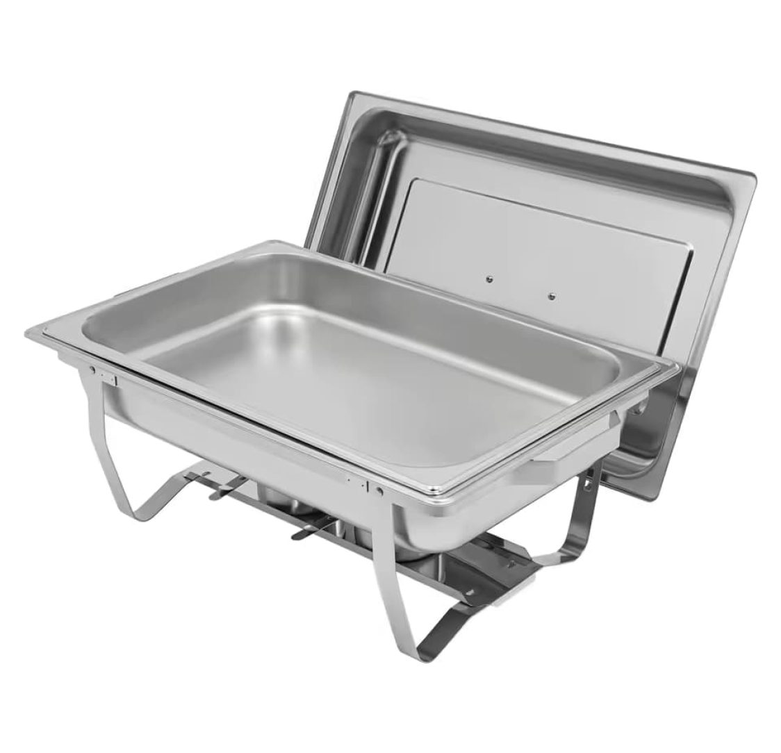Rechaud / Aquecedor de alimentos para buffet retangular 7L em aço inoxidável - Tamanho do produto: 60x34.5x30 cmEquipamento disponível para aluguer. Para um orçamento mais detalhado entre em contacto connosco via WhatsApp.