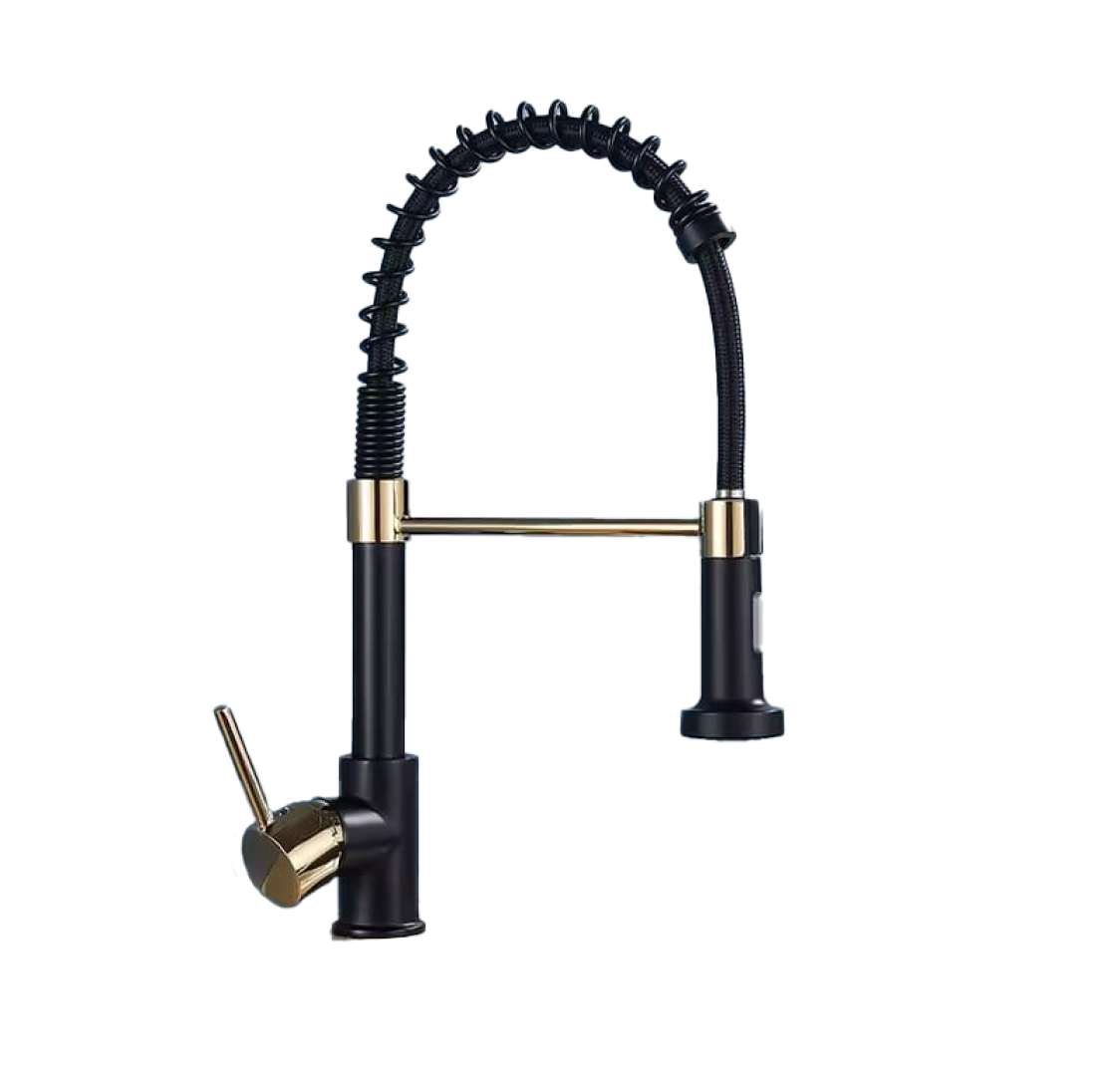 Torneira de Chuveiro Preta e Dourada com misturador de água quente e friaEquipamento disponível para aluguer. Para um orçamento mais detalhado entre em contacto connosco via WhatsApp.