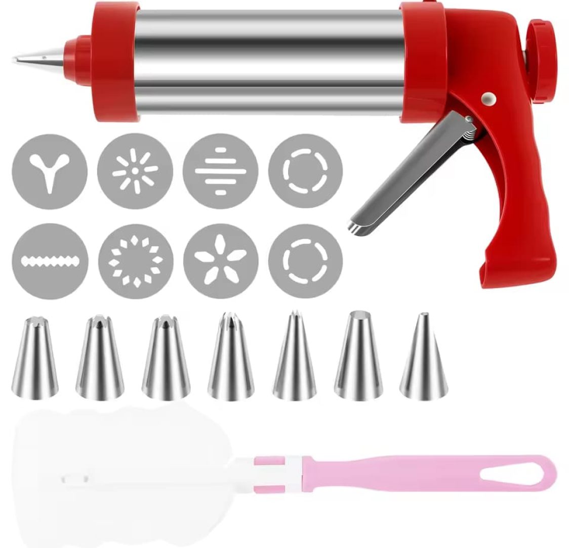 Máquina de Churros, Biscoitos e Sobremesas Vermelha com acessórios em aço inoxidável - Dimensões da máquina: 22x15x6cm - Discos: 5cm diâmetro - Saco de confeitar Churro: 18x43,5 cmEquipamento disponível para aluguer. Para um orçamento mais detalhado entre em contacto connosco via WhatsApp.
