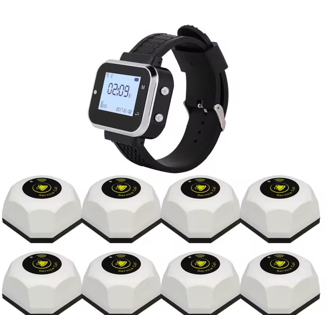 Sistema de chamada para restaurante / Beeper / Pager Branco, 8 discos e 1 relógio, alcance 800m - Sistema sem fios - Dimensão: 60x60x32mm - Poder: bateria 12V23A - Alcance: 800 metros (área aberta)Equipamento disponível para aluguer. Para um orçamento mais detalhado entre em contacto connosco via WhatsApp.