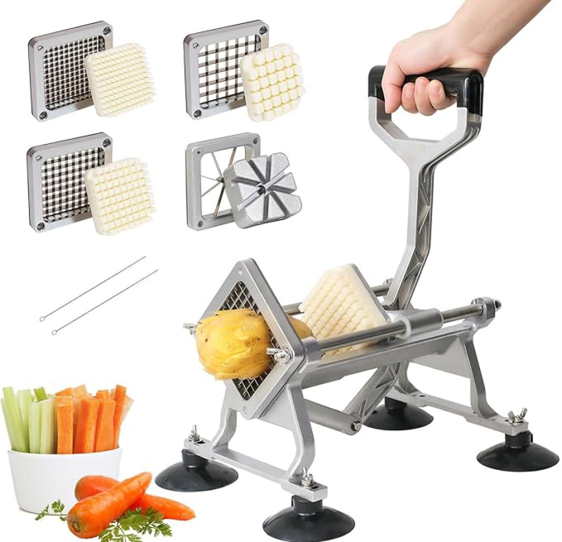 Cortador de Batatas e Legumes Profissional Manual com 4 Lâminas de Corte - Com 4 lâminas e 2 escovas de limpeza - Dimensões: 29x20x24cmEquipamento disponível para aluguer. Para um orçamento mais detalhado entre em contacto connosco via WhatsApp.