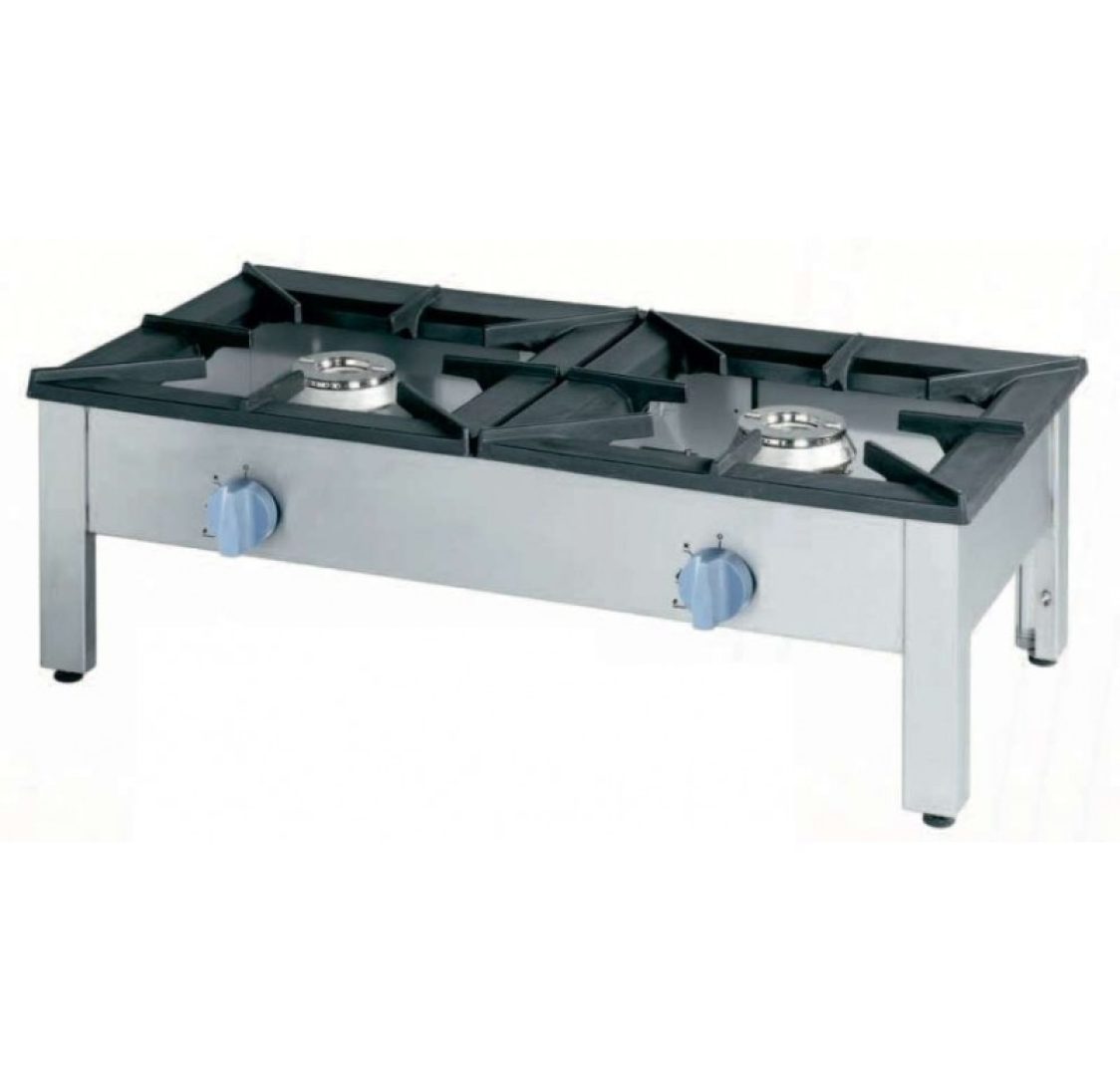 Fogão auxiliar a gás 2 queimadores 1140x605x380mm - Fogos: 2 - Potência dos fogos: 2x9 kW - Tipo de queimador: Coroa simplesEquipamento disponível para aluguer. Para um orçamento mais detalhado entre em contacto connosco via WhatsApp.
