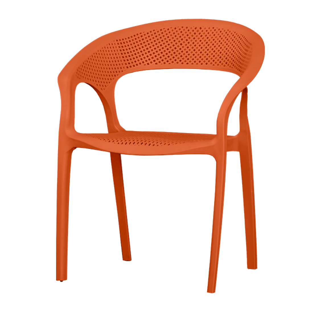Cadeira Aria Laranja - Empilhável - Proteção contra UV - Reciclável - Dimensões: 57x55x82cmEquipamento disponível para aluguer. Para um orçamento mais detalhado entre em contacto connosco via WhatsApp.