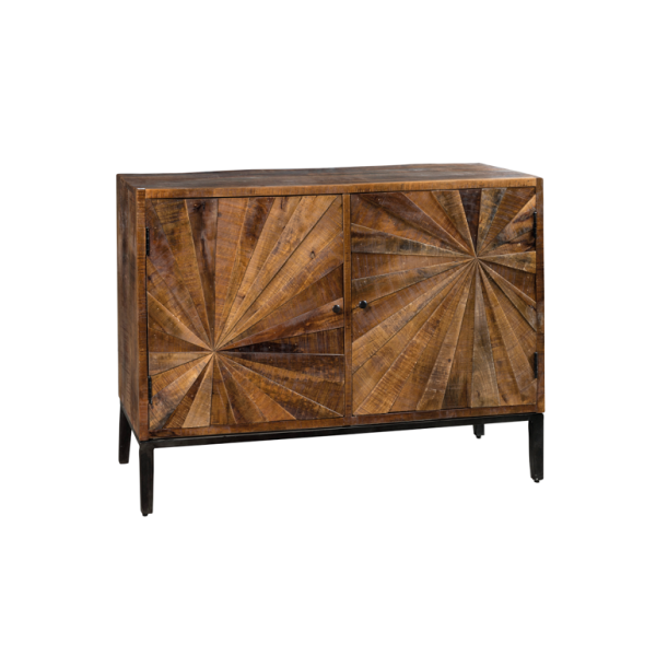 Aparador Broome de 2 portas, feito à mão em madeira maciça de acácia; estilo étnico-vintage realçado pelo acabamento refinado das portas, conferindo-lhe um carácter contemporâneo. Composto por três portas com prateleira interior. Pés em ferro. Perfeito para ambientes modernos, industriais e vintage. O metal juntamente com os tons quentes da madeira criam um efeito bonito, muito elegante e requintado.