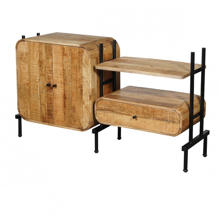 Aparador East, fabricado em madeira maciça verdadeira. Tem uma linha simples e prática, moderna e essencial. Pode ser utilizado de várias formas, como aparador ou como aparador alto. A sua estrutura e as suas medidas são perfeitas para mobilar o seu espaço. Aparador em madeira verdadeira e ferro forjado. Único e original no seu género. Composto por 2 portas com prateleira interior, puxadores e pernas em ferro forjado. 1 gaveta e 2 prateleiras. – Dimensões: 146x41x82cm