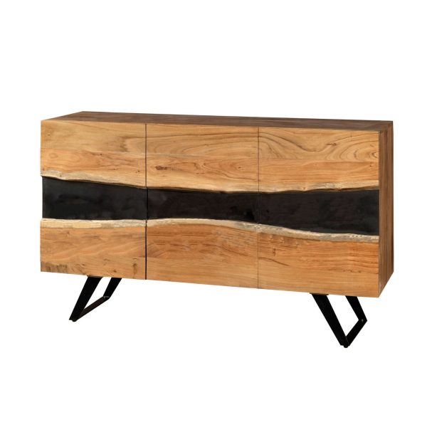 Aparador Alley com 3 portas. Feito inteiramente em madeira maciça com pés em ferro forjado. Este aparador de estilo étnico é perfeito para mobilar a sua divisão.