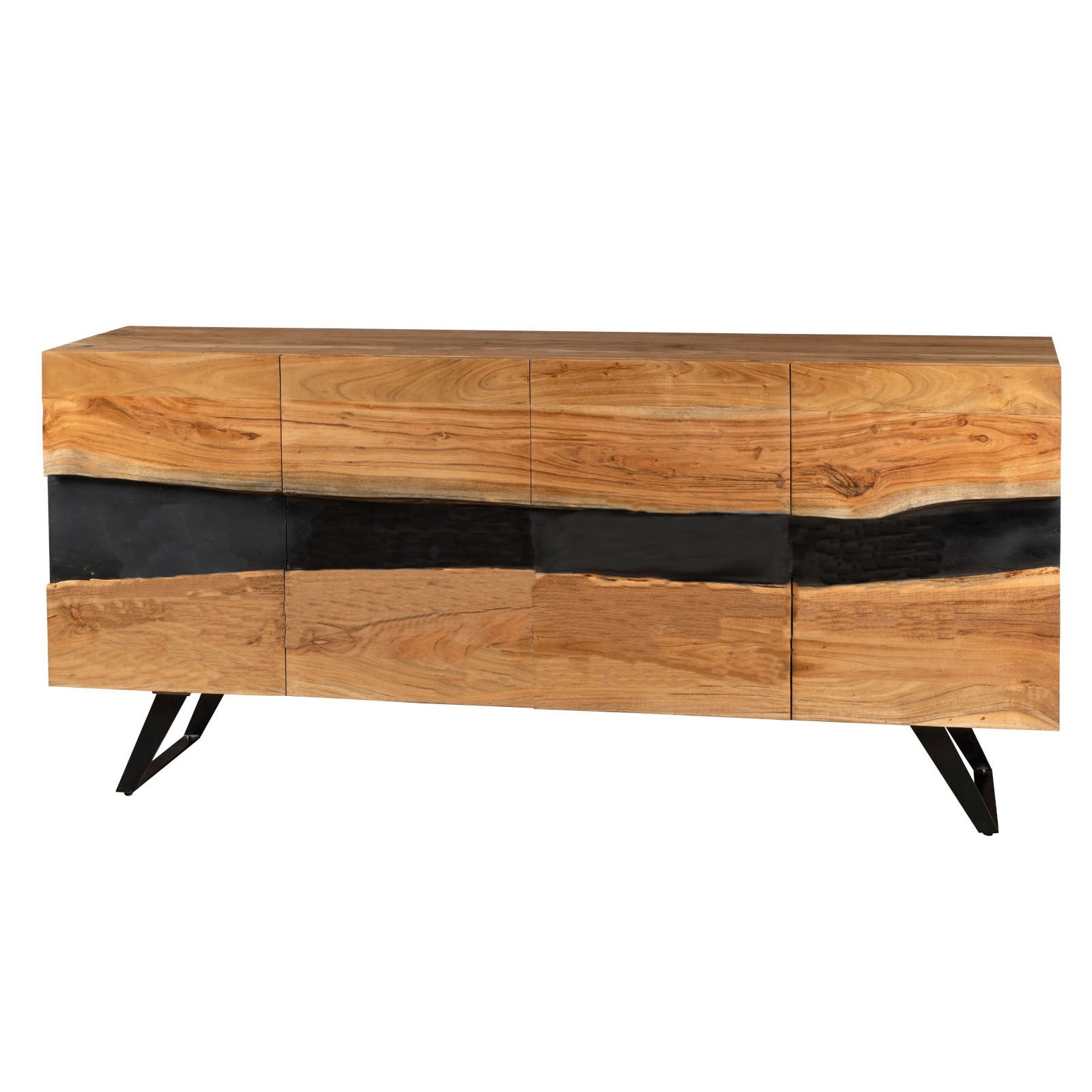 Aparador Alley com 4 portas. Feito inteiramente em madeira maciça com pés em ferro forjado. Este aparador de estilo étnico é perfeito para mobilar a sua divisão. – Dimensões: 200x45x93cm