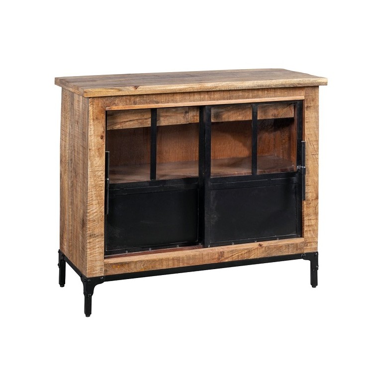 O aparador industrial Playmouth é composto por 2 portas e 2 gavetas interiores, escondido dos olhos das pessoas para criar um design mais linear. Um artigo para a sua casa que não só encanta o olhar, mas também apresenta uma estrutura sólida. A madeira maciça e o ferro tornam este móvel intemporal. Tem medo de criar demasiada sombra? As portas de vidro permitir-lhe-ão tornar a sua divisão luminosa e colorida com acessórios de mobiliário que pode expor, como se de um quadro de avisos se tratasse. – Dimensões: 110x45x91cm