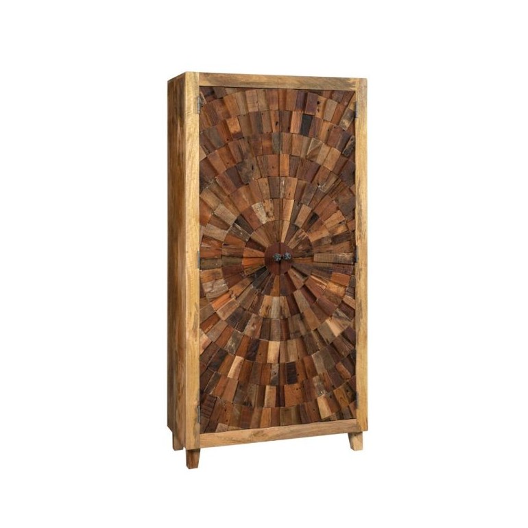 Armário Walden em madeira reciclada. Este magnífico guarda-roupa indiano é feito de madeira maciça com trama de madeira Suar nas portas. É um armário muito espaçoso com prateleiras interiores. – Dimensões: 90x40x180cm