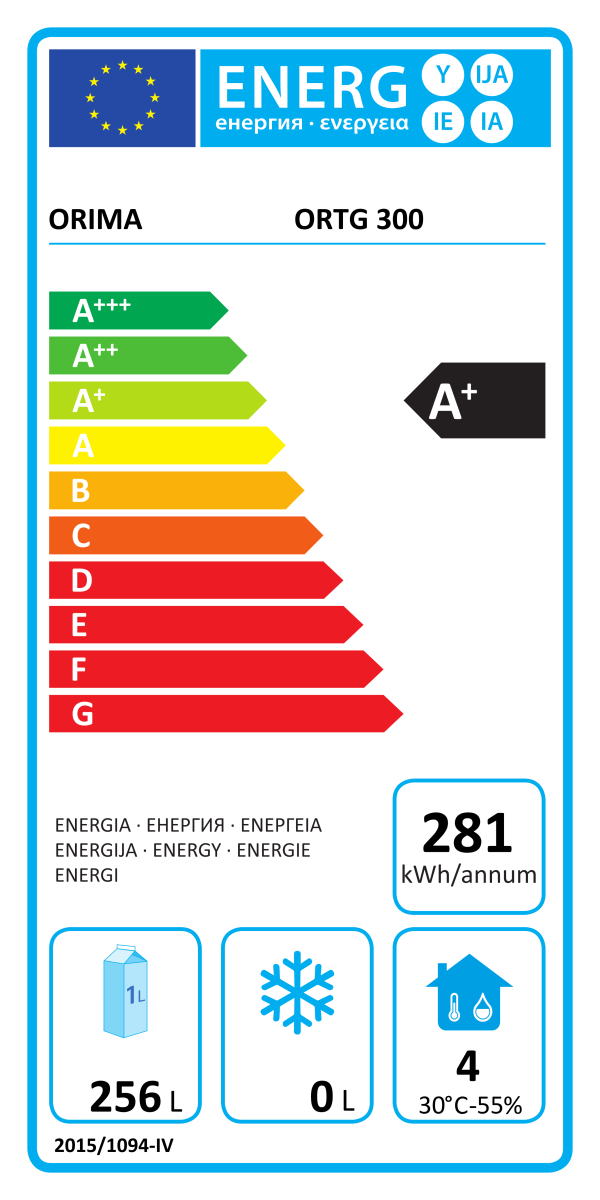 Capacidade bruta total: 304 L Capacidade net total: 256 L Capacidade de garrafas: 200 Nº de tampas: 2 Tampa de correr Termómetro Rodas Temp. 3º C a 10 ªC Gás R600a Consumo anual de energia: 591 kWh Classificação energética: A Dimensões: A820xL1060xP670 mm