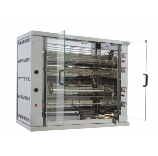 Suportes para espetos projetados para evitar perda de calor, tornando o assador mais eficiente.