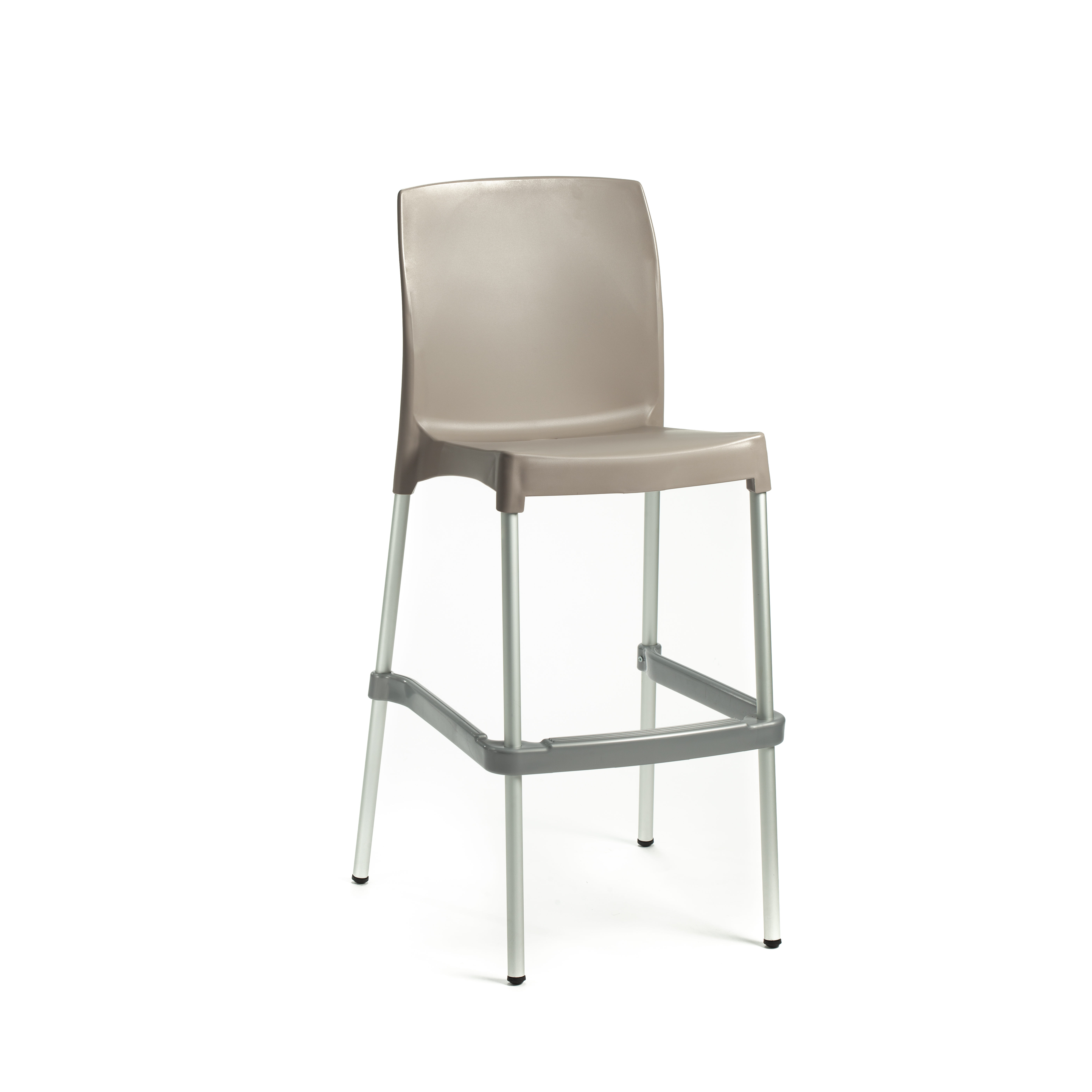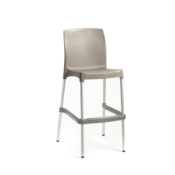 Banco de Bar Alto BONA Taupé – Empilhável – Proteção contra UV – Reciclável – Dimensões: 48x58x111 cm