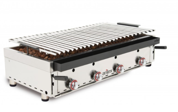 Grelha regulável em 3 alturas com comandos de baquelite reguláveis nas âncoras.
