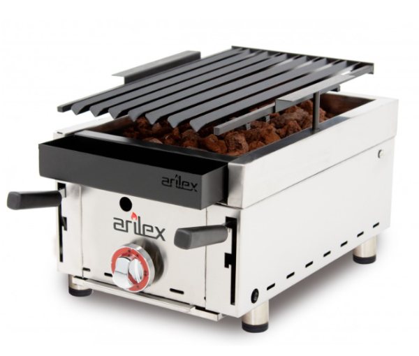Grill ajustável em 3 alturas com controles de baquelite ajustáveis em âncoras.
