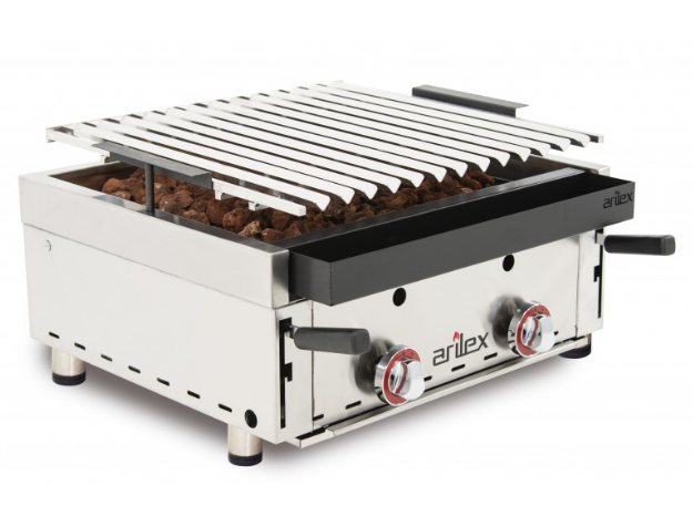 Grill ajustável em 3 alturas com controles de baquelite ajustáveis em âncoras.