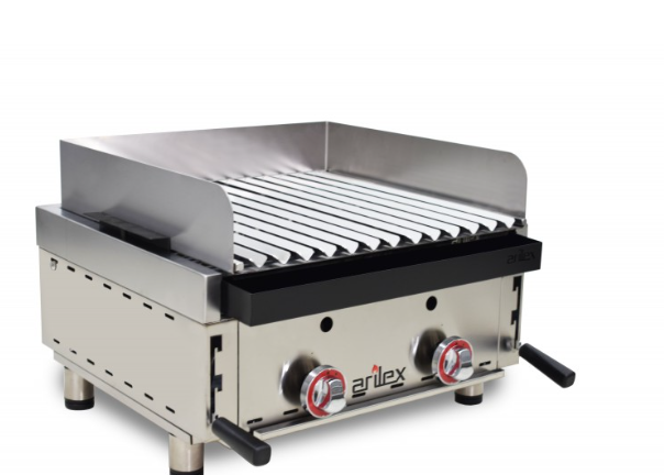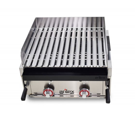 Queimadores tubulares de alto poder calorífico e termopar de segurança. Controles em baquelite cromado de alta qualidade com marcas de máximo/mínimo.