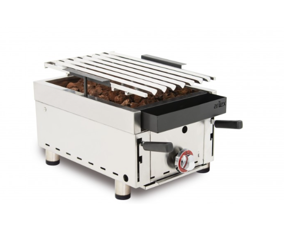 Grill ajustável em 3 alturas com controles de baquelite ajustáveis em âncoras.