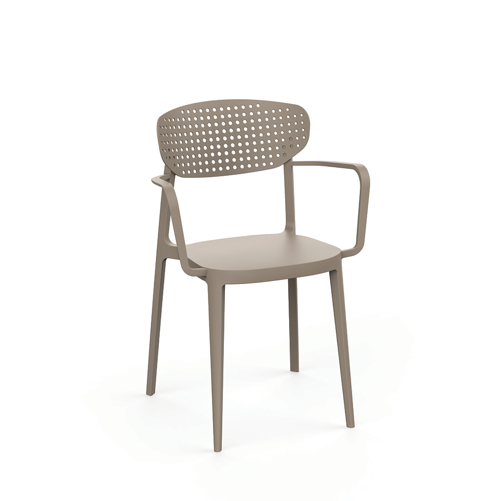 Cadeira Noah com Braços Antracite - Empilhável - Proteção contra UV - Reciclável - Dimensões: 56.5x47.2x88.6cmEquipamento disponível para aluguer. Para um orçamento mais detalhado entre em contacto connosco via WhatsApp.