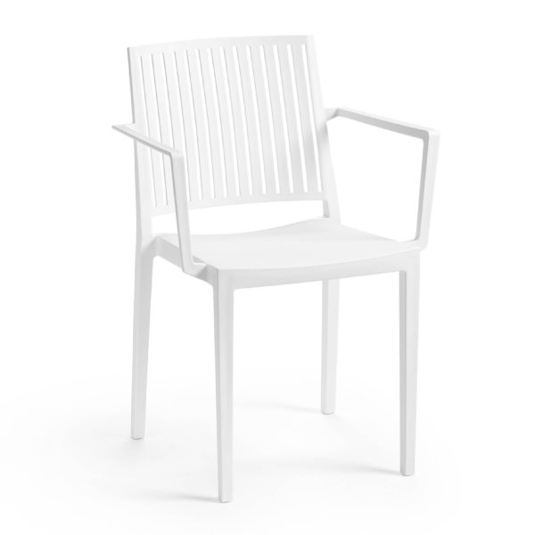 Cadeira Noah com Braços Antracite - Empilhável - Proteção contra UV - Reciclável - Dimensões: 56.5x47.2x88.6cmEquipamento disponível para aluguer. Para um orçamento mais detalhado entre em contacto connosco via WhatsApp.