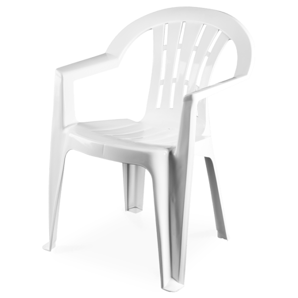Cadeira Casablanca com Braços Branco – Empilhável – Proteção contra UV – Reciclável – Dimensões: 55x59x78cm