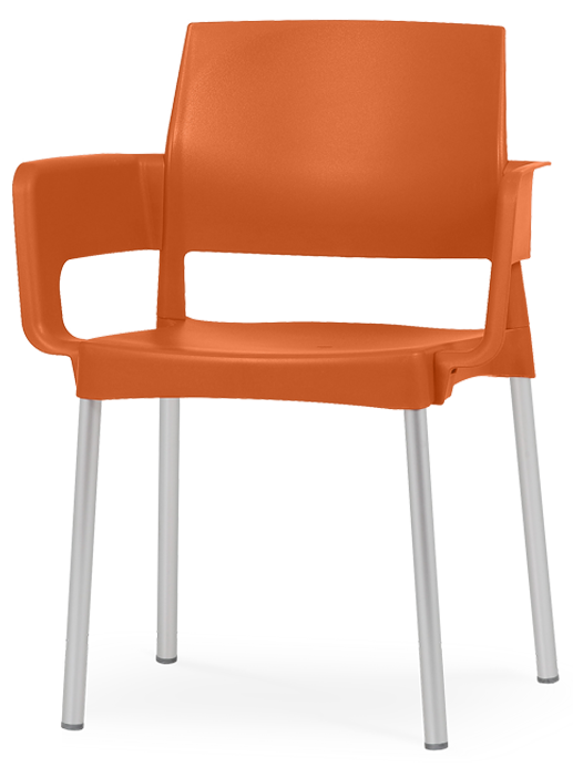 A simplicidade da forma que a define permite o seu enquadramento discreto em perfeita harmonia com o espaço que ocupa. Este modelo dispõe de braços que acrescentam robustez para ambientes que a requerem