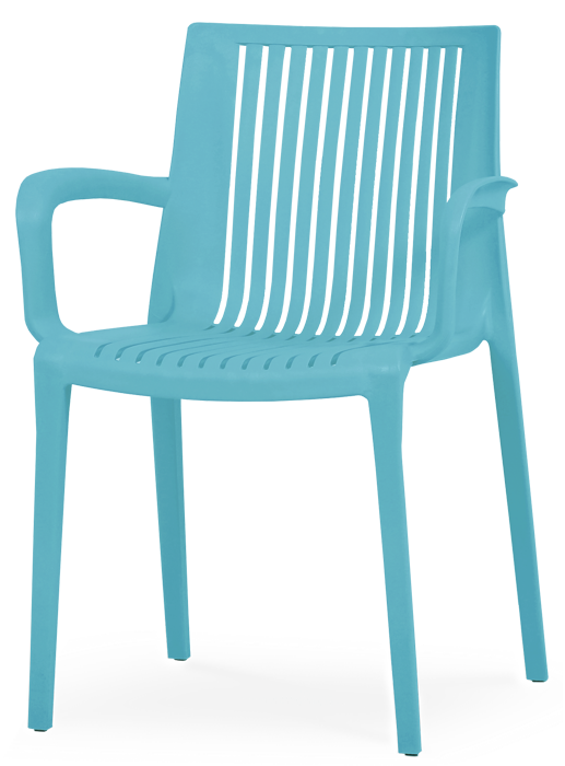 Cadeira DALLAS Azul Sky – Empilhável – Proteção contra UV – Reciclável – Dimensões: 56x58x86cm