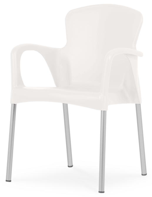 Cadeira em plástico para uso exterior, pernas de alumínio, proteção contra raios UV, reciclável, empilhável. Fabricado em Portugal, Plásticos Joluce.