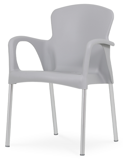 Cadeira Noah com Braços Antracite - Empilhável - Proteção contra UV - Reciclável - Dimensões: 56.5x47.2x88.6cmEquipamento disponível para aluguer. Para um orçamento mais detalhado entre em contacto connosco via WhatsApp.