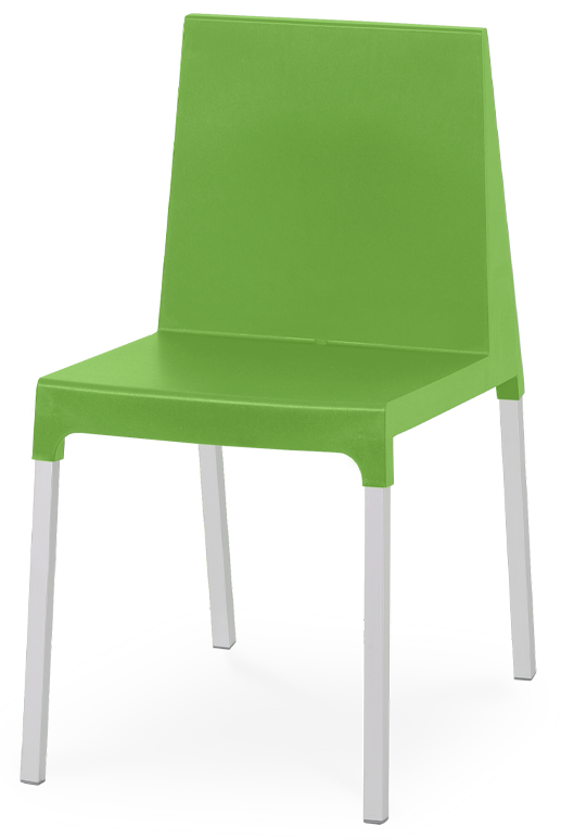 Cadeira em plástico com fibra de vidro, pernas de alumínio, para uso exterior e interior, proteção contra raios UV, tacos antiderrapantes, reciclável, empilhável. Fabricado em Portugal, Plásticos Joluce.