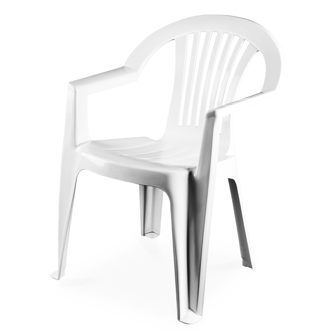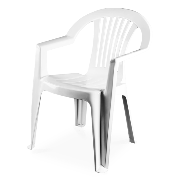 Cadeira Lagos com Braços Branco – Empilhável – Proteção contra UV – Reciclável – Dimensões: 55x59x78cm