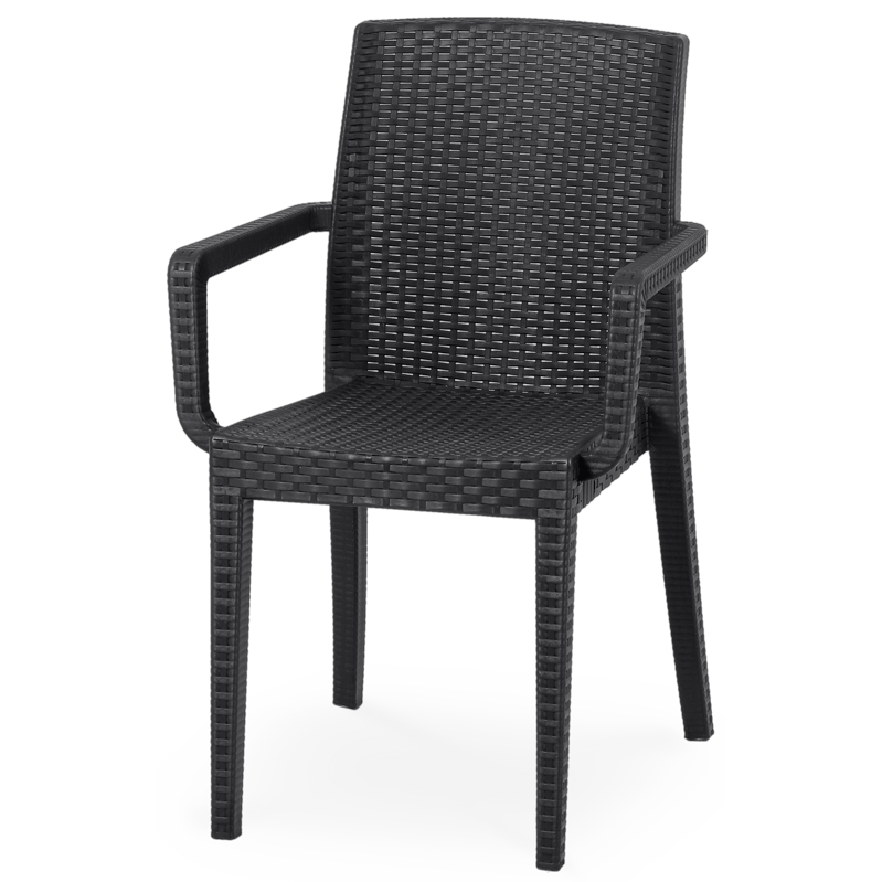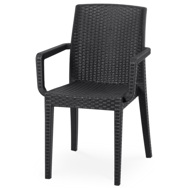 Cadeira Rosy Com Braços Castanho – Empilhável – Proteção contra UV – Reciclável – Dimensões: 55x57x86cm