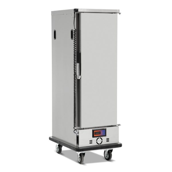 Características técnicas – Fabricado totalmente em aço inoxidável com estrutura e componentes reforçados. – Corpo totalmente hermético, cantos interiores com curva sanitária de raio largo. – Máxima eficiência energética graças ao isolamento integral em espuma de poliuretano espessa e de alta densidade. – Bloco de aquecimento amovível com elementos de aquecimento ventilados e tabuleiro de humidade. – Circulação de ar optimizada para um fluxo de ar homogéneo de baixo para cima. – Painel de controlo digital com sistema HACCP para controlo de temperaturas e alarmes. – Corrediças encastradas no armário (grelhas / tabuleiros não incluídos). – Proteção térmica de segurança. – Rodas grandes, insonorizadas e com travão. – Fechaduras equipadas com fechadura de chave. – Portas com abertura de 180°. – Para-choques de borracha resistentes.
