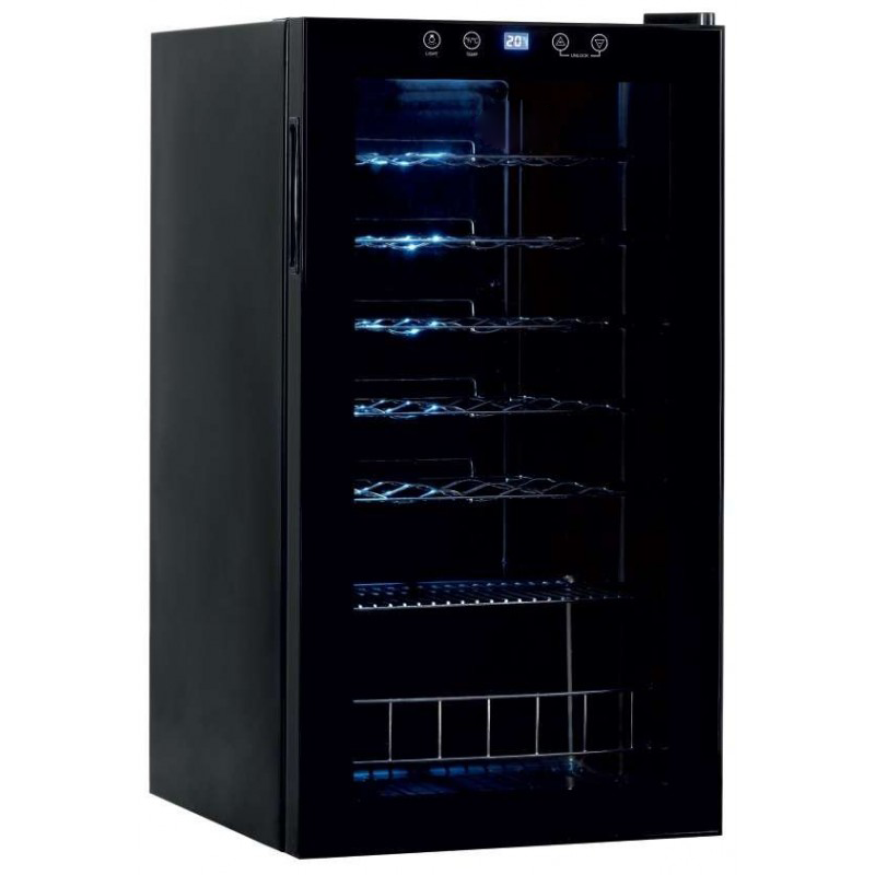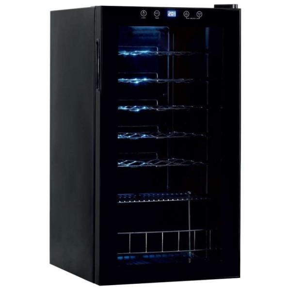 Características técnicas – Cave de vinho com compressor, pelo que é perfeita para manter o vinho tinto à temperatura correcta e para arrefecer vinho branco ou cava. – Praticamente não produz ruído e é perfeita tanto para uso doméstico como comercial. – Indicador LED que mostra a temperatura. – Controlo eletrónico da temperatura com ecrã tátil regulável de 4 a 18°C. – Compressor na base com vibração reduzida para um menor ruído. – Isolamento em poliuretano injetado com uma densidade de 40 Kg/m3. – Gás ecológico R600a, amigo do ozono. – Design elegante com porta de vidro e puxador embutido. – Porta com câmara dupla de vidro. – Prateleiras metálicas anti-gotejamento. – Tensão: 220-240V.