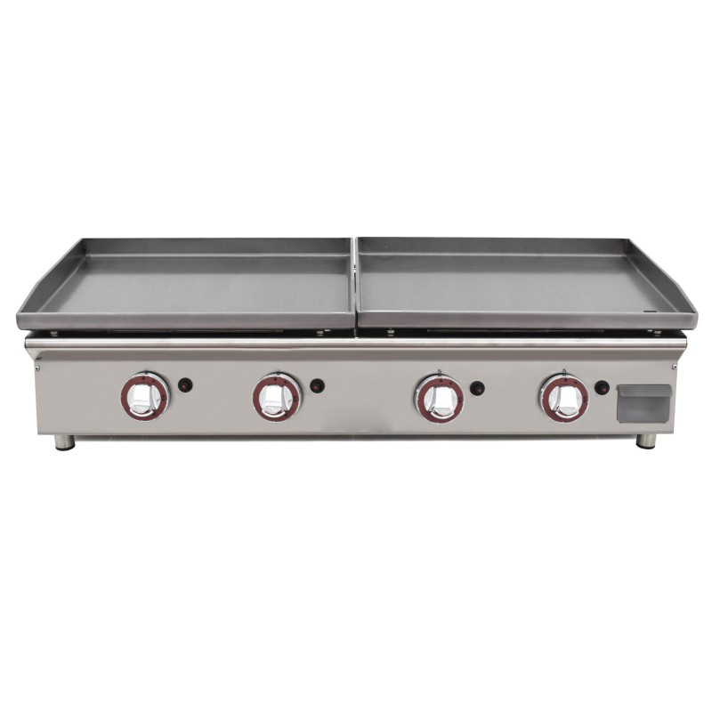 Características: – Fabricado em Espanha com materiais de alta qualidade. – Certificação CE. – Fabricado em aço inoxidável acetinado com 1 mm de espessura. – Placa dupla para assar com 6 mm de espessura. Calha de 36 mm de altura. Fabricado em aço inoxidável com proteção antiferrugem. Ideal para grelhar peixe e carne sem misturar sabores. – Placa de cozinhar única no mercado, completamente amovível para facilitar o transporte, a manutenção e a limpeza. – Botões em baquelite cromada de alta qualidade com marcador de máximo/mínimo. – Tabuleiro de gordura frontal de grande capacidade integrado no armário e facilmente amovível. – Ignição piezoeléctrica (1 por válvula de gás). – Pés altos ajustáveis e robustos. – Queimador com saída de chama em todo o perímetro, garantindo uma distribuição uniforme do calor em toda a placa. Sem “zonas frias”. Alto poder calorífico com termopar de segurança. – Saída de gás na parte de trás para facilitar a instalação em locais com pouco espaço. Fornecido de série pré-configurado para gás propano – butano e são fornecidos injectores para mudanças para gás natural.