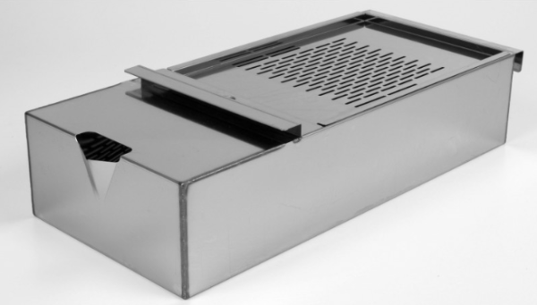 Fundo em aço inox de grande capacidade para recolha de óleos e gorduras.