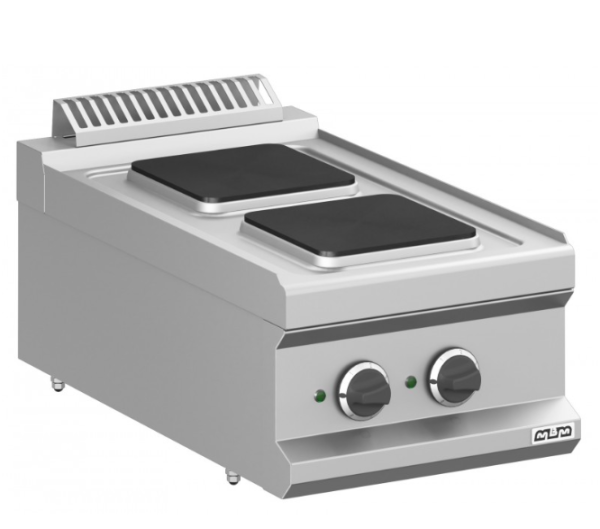 A placa de cozimento com cantos frontais arredondados em aço liso, com acabamento polido ou cromado maciço, tem espessura de 15 mm. Bacia removível em aço inox com capacidade de até 2 litros para facilitar as operações de limpeza e descarga de graxa. Nos modelos de 70 cm é possível diferenciar a cozedura graças aos queimadores a gás / resistências elétricas independentes. O acabamento cromado permite cozinhar sucessivamente diferentes alimentos sem o risco de transferência de cheiros e sabores, evitando assim a necessidade de limpar a chapa entre as diferentes cozeduras. Mais do que facilitar as operações de limpeza, o acabamento cromado se caracteriza pela menor dispersão de calor, tornando o ambiente de trabalho mais confortável. Bancada de 1 mm em aço inox AISI 18/10. Excelente alinhamento com as juntas.