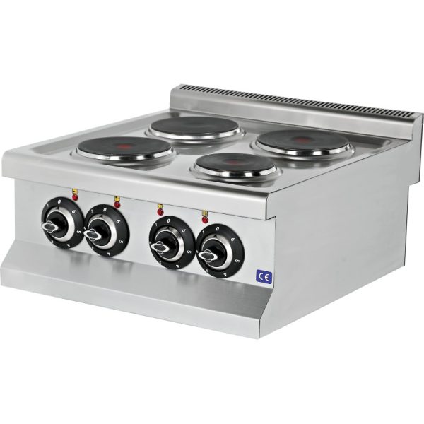 Fogão elétrico de mesa 4 zonas 4×1,75 kw 600x635x285mm – Zonas: 4 – Zonas de potência (kw): 4 x 1,75 – Potência total (kw): 7