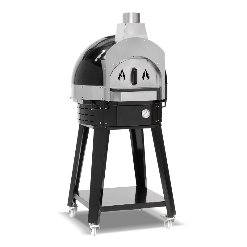 Características técnicas – Forno com um design moderno e elegante em aço inoxidável. – Controlo de temperatura regulável até 400°C com termóstato de segurança. – Queimadores a gás de alta qualidade com válvula de segurança. – Sistema de ignição Piezo. – Óptima distribuição do calor. – Fácil de manusear e limpar. – Materiais resistentes ao calor e puxador da porta atérmico. – Base da câmara em pedra refractária com 600/700 mm de diâmetro (consoante o modelo). – Altura da câmara 265 mm. – Dimensões da porta 360×200 mm. – Fornecido pronto para gás propano-butano e são fornecidos injectores para mudar para gás natural. – Produzido de acordo com os mais elevados padrões de higiene e segurança. – Cumpre os regulamentos CE e as normas alimentares europeias.