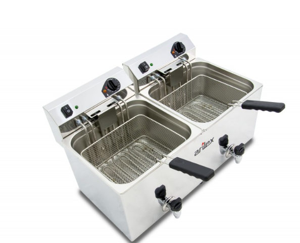 Fritadeira Elétrica Trifásica 12+12L c/Contator e Torneira 695x495x325